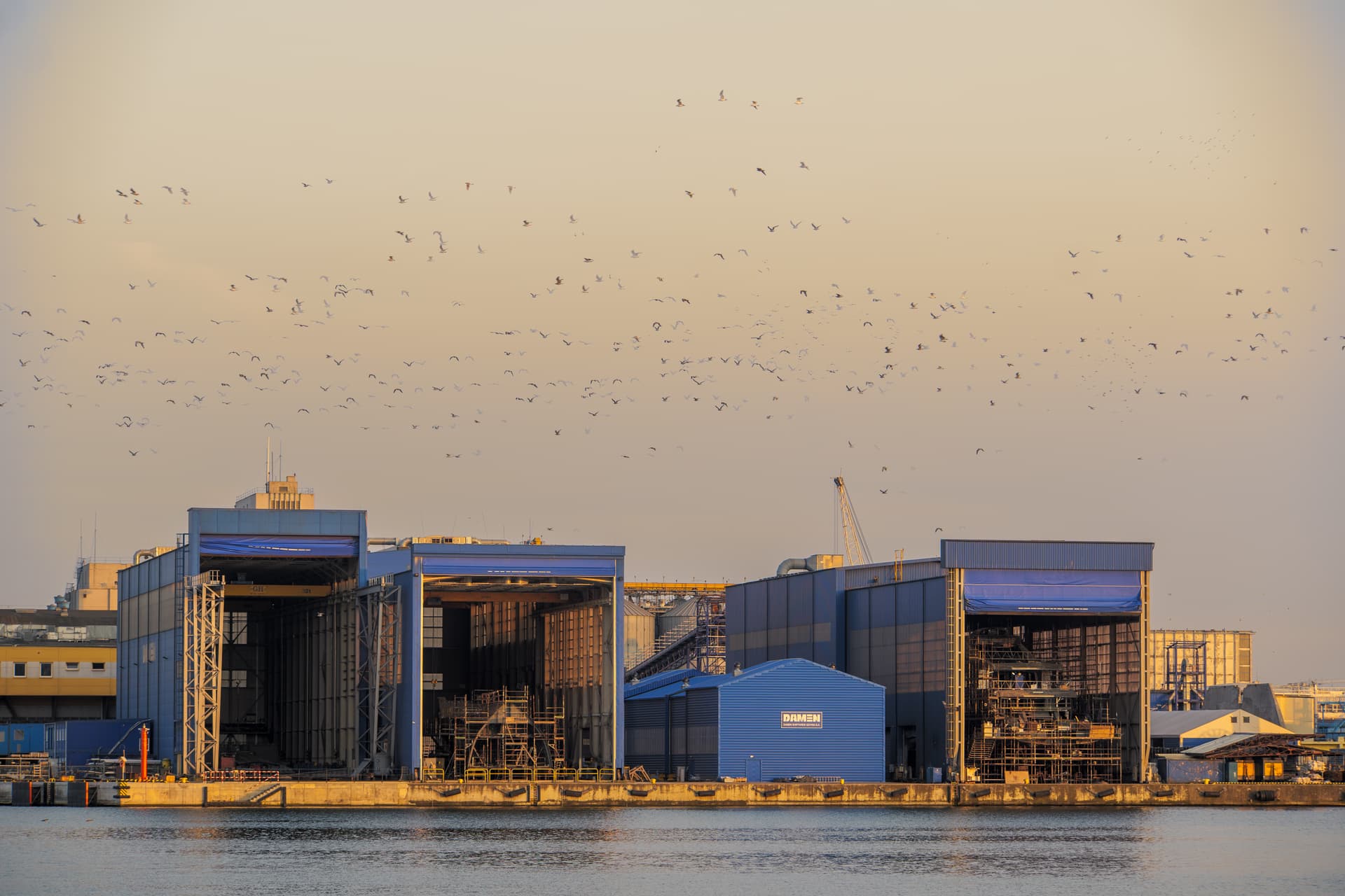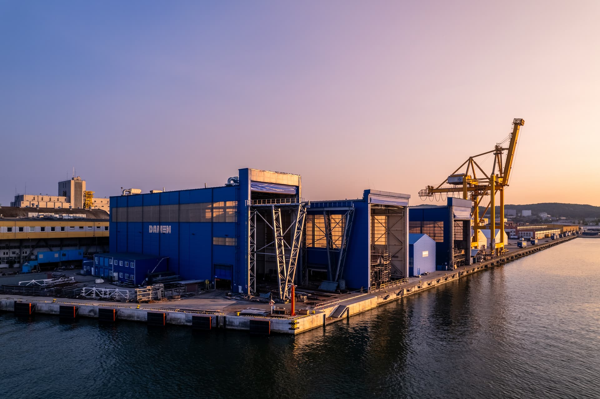 Allcon, jako generalny wykonawca, podjął się realizacji złożonego pod kątem inżynieryjnym, 3-etapowego projektu, polegającego na modernizacji i rozbudowie stoczni Damen w Gdyni. W pierwszym etapie wykonano nadbudowę funkcjonującej hali produkcyjnej o kolejną kondygnację biurowo-socjalną. Zainstalowano także pompy ciepła chłodzone wodą morską pobieraną z głębokości poniżej 7 metrów.