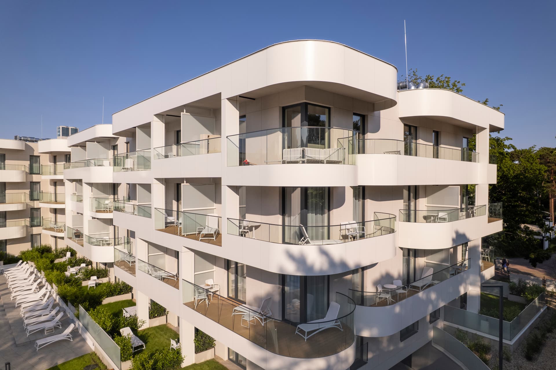 Realizacja polegała na częściowym wyburzeniu, przebudowie oraz istotnej rozbudowie istniejącego budynku wraz z basenem. W ramach inwestycji zespół zrealizował „pod klucz” ponad 100 apartamentów w bardzo wysokim standardzie.