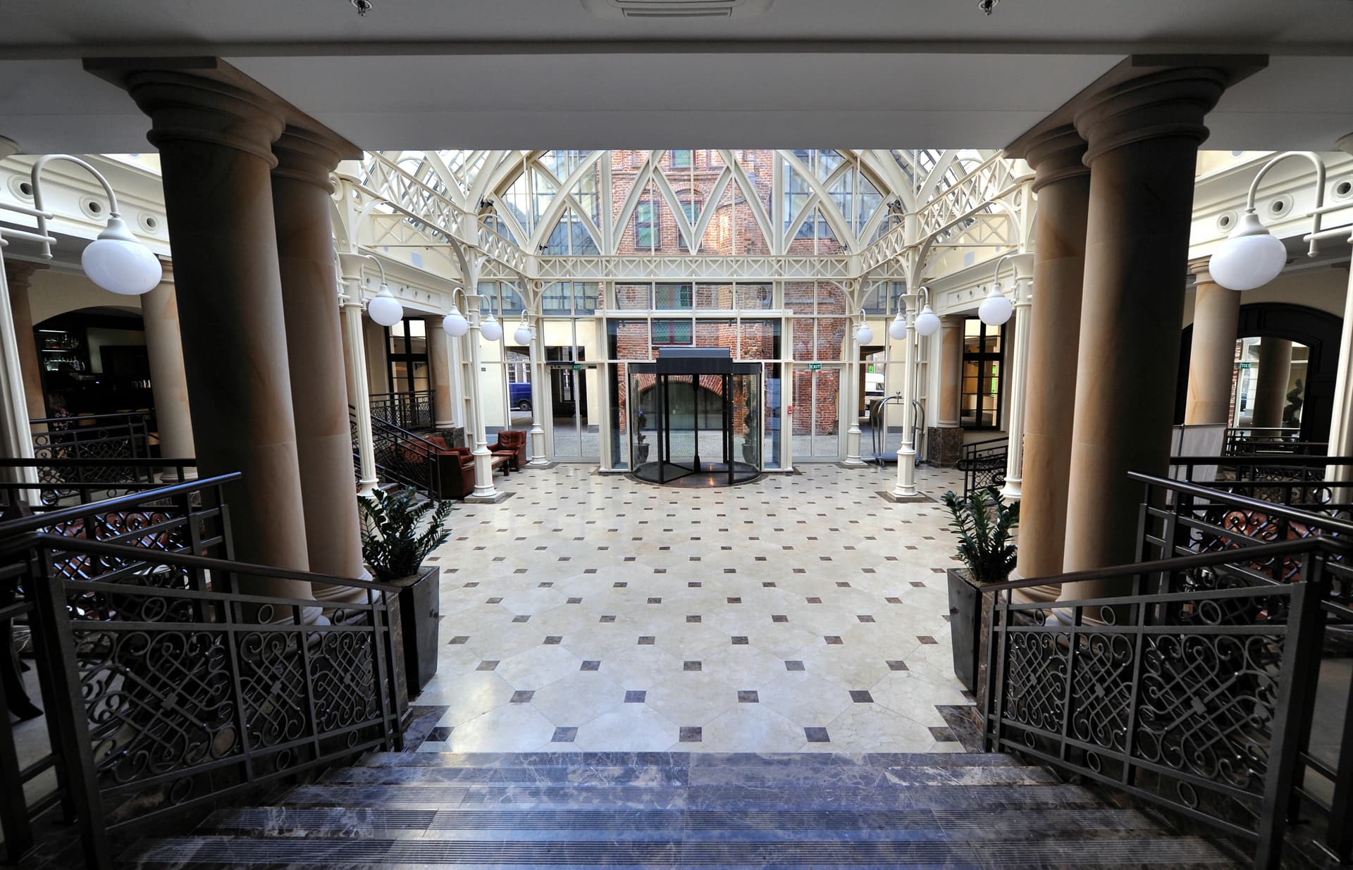 Projekt zakładał również zachowanie i wkomponowanie w bryłę hotelu zabytkowej, gotyckiej kamieniczki z XIV wieku, którą rozebrano na niewielkie elementy, a następnie pieczołowicie odtworzono w pierwotnym kształcie.