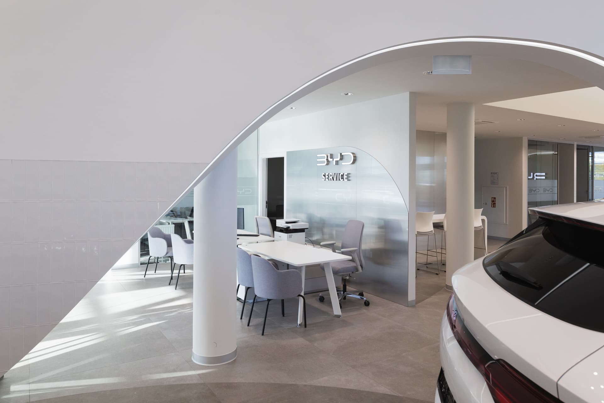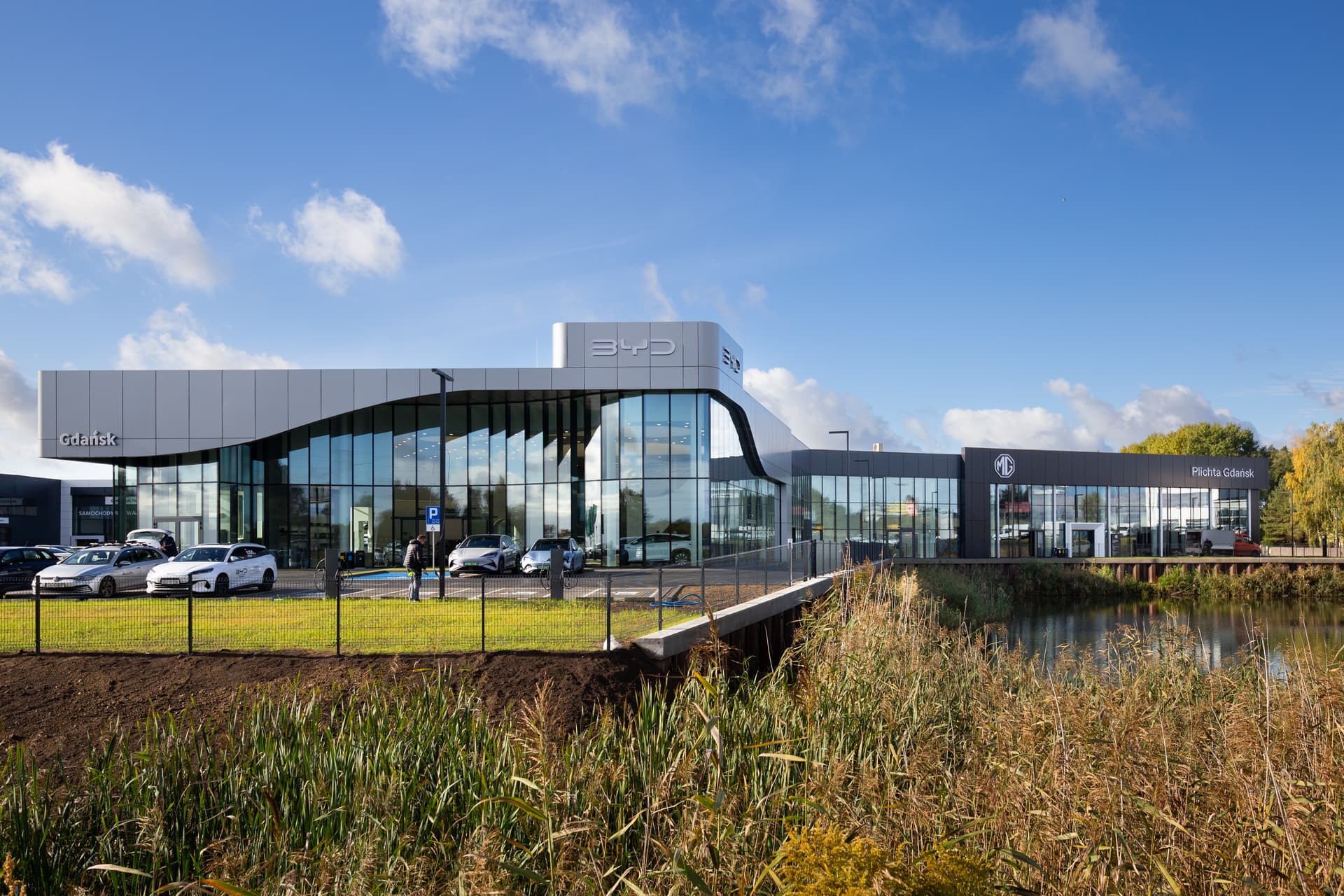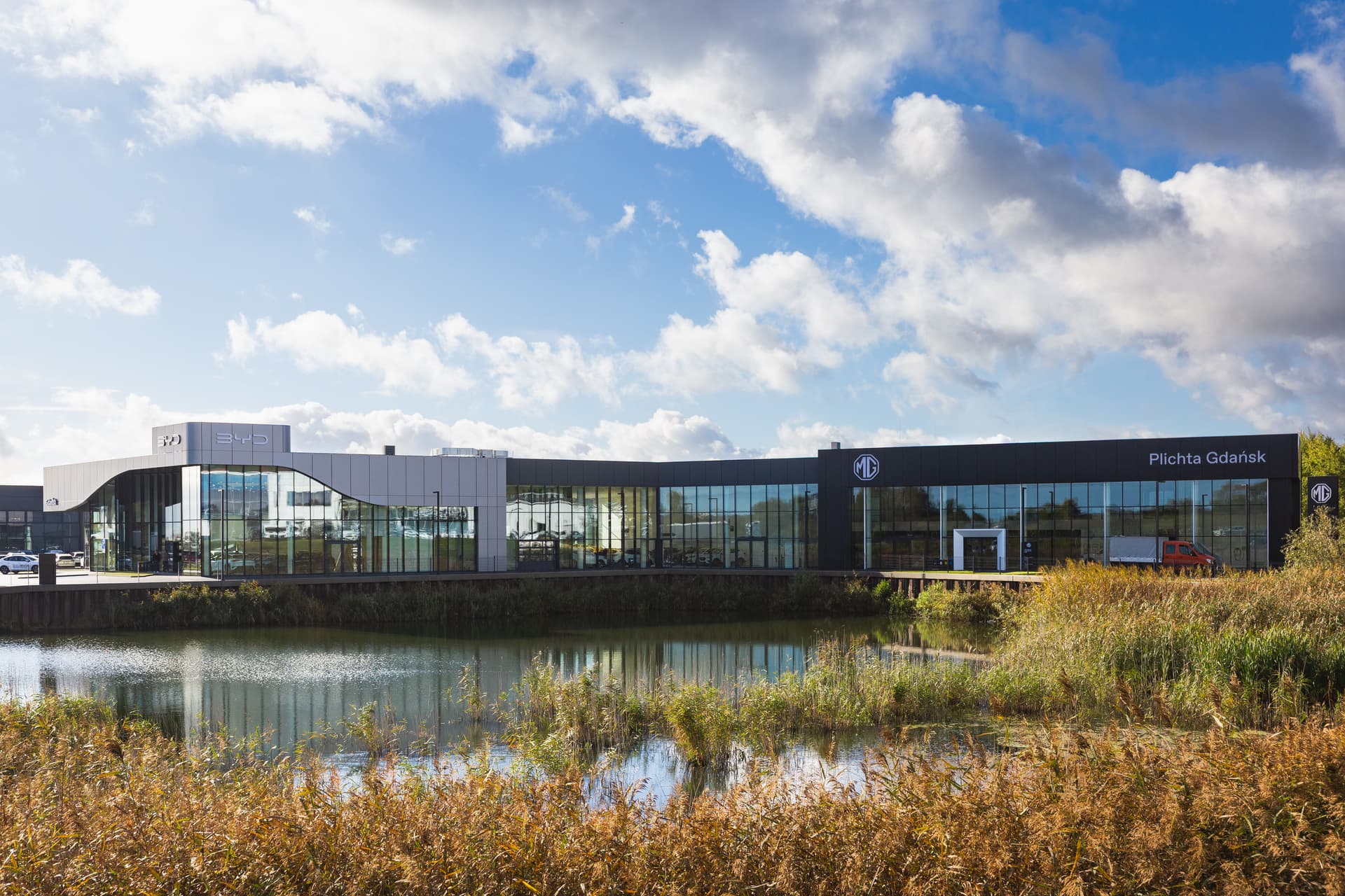 Wymagająca i nowoczesna realizacja multisalonu samochodowego, która obejmowała postawienie budynku z zaawansowaną konstrukcyjnie szklaną fasadą, wewnętrznymi ścianami łukowymi oraz sufitami napinanymi. W chwili oddania do użytku, salon BYD był najbardziej innowacyjnym obiektem tej marki na terenie UE, jednocześnie jest kolejną terminową realizacją dla Grupy Plichta.