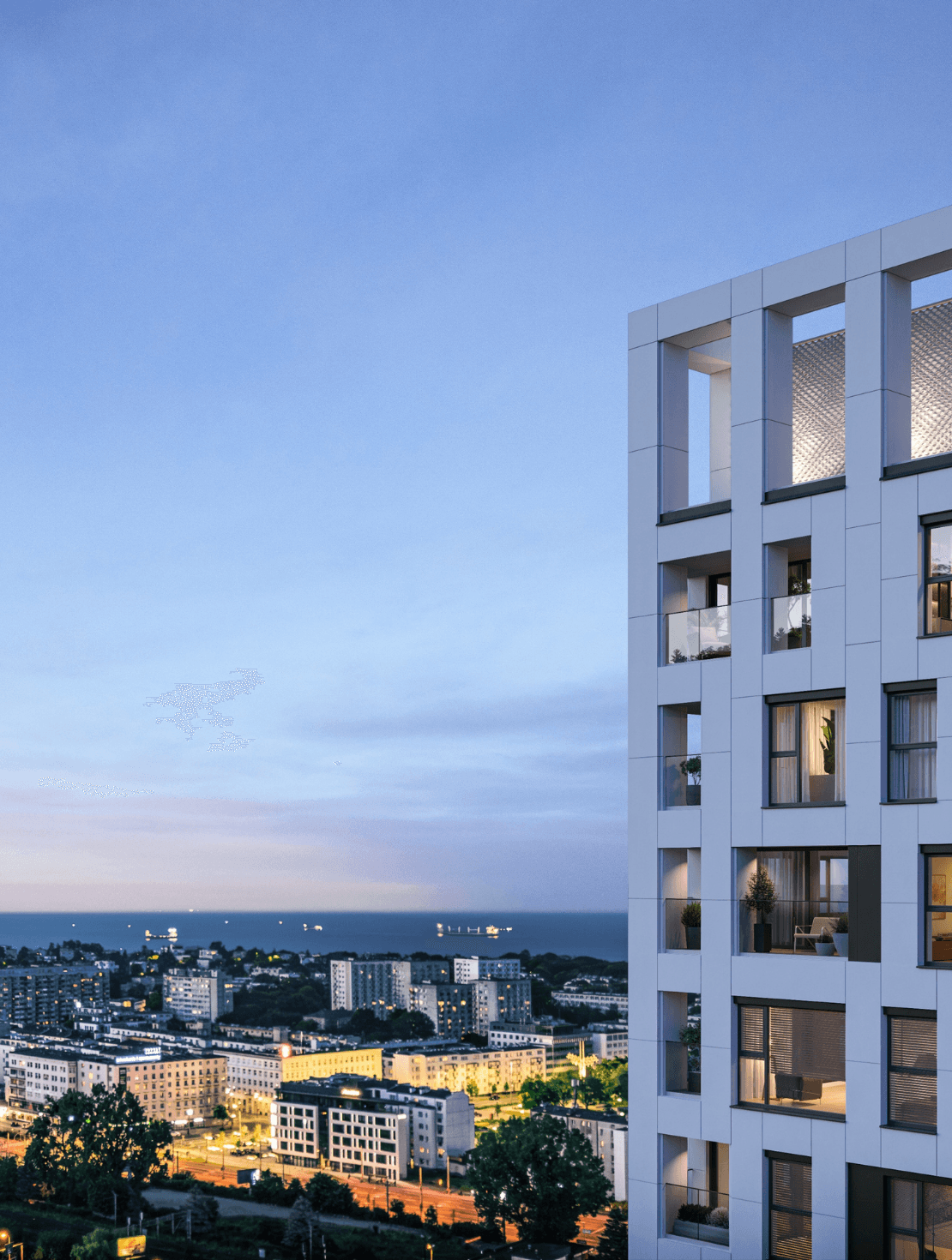 SKYCITY Gdynia to miastotwórczy projekt łączący wysokiej klasy apartamenty, przestrzenie biurowe i usługi. Nowy punkt odniesienia. Symbol nowoczesności. Przykład innowacyjnego, zrównoważonego budownictwa na miarę XXI wieku.