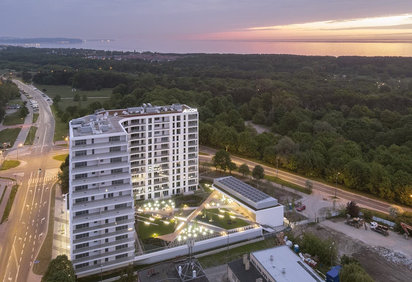Przy największym parku w Trójmieście, 900 metrów od plaży, powstał prestiżowy apartamentowiec Tarasy Bałtyku. Jego wyrazista, nowoczesna bryła zapewnia mieszkańcom spektakularne widoki – na morze, morenowe wzgórza, zieleń parku i panoramę Gdańska. Części wspólne wzbogacono o zielone patio, salę fitness, strefę saun i klubową przestrzeń z bilardem.