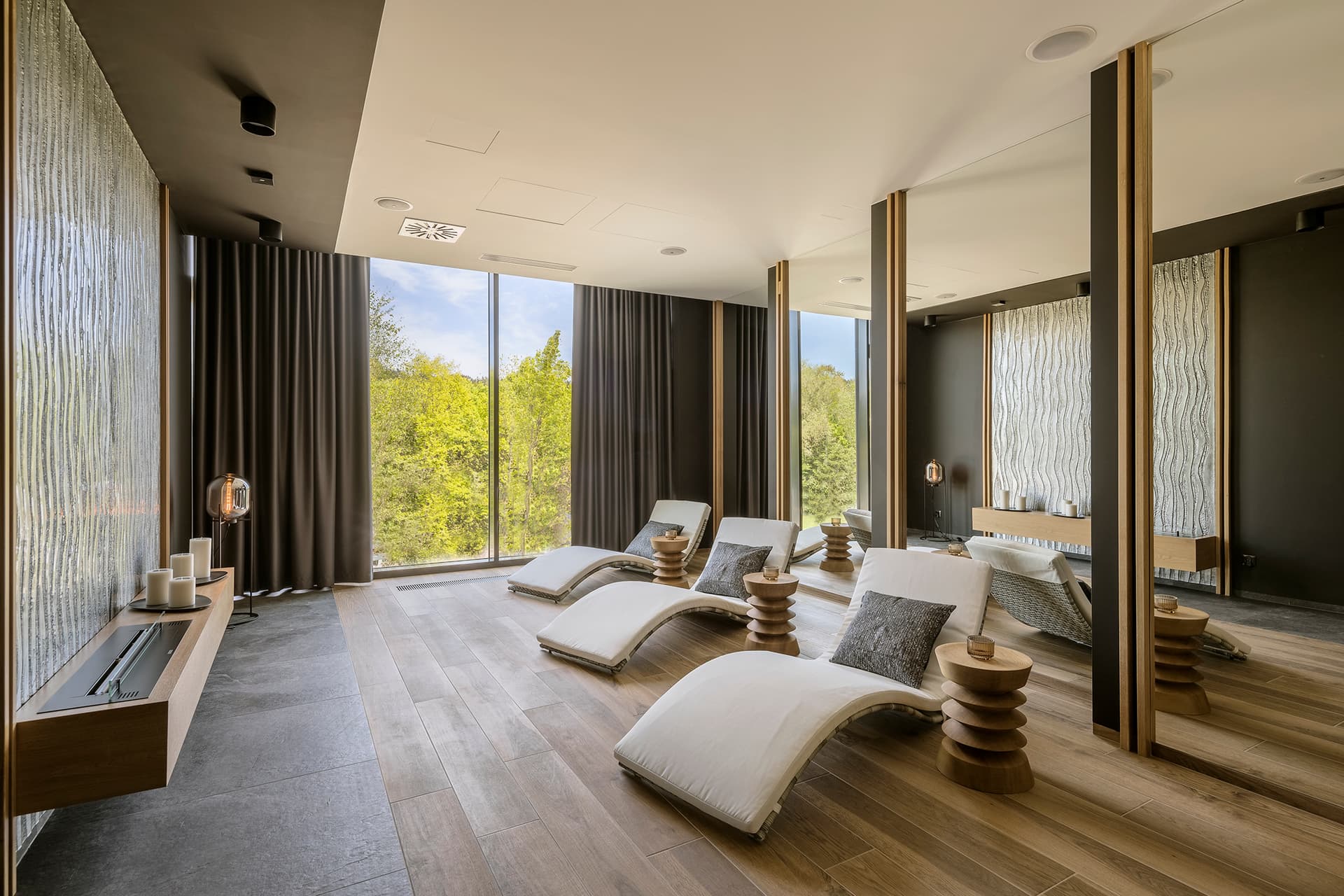 Sauna dostępna dla mieszkańców to sposób na odprężenie, poprawę nastroju i chwilę tylko dla siebie. Uzupełnieniem tej strefy relaksu są wygodne leżaki, które pozwalają wyciszyć się i zregenerować w spokojnym, kameralnym otoczeniu.