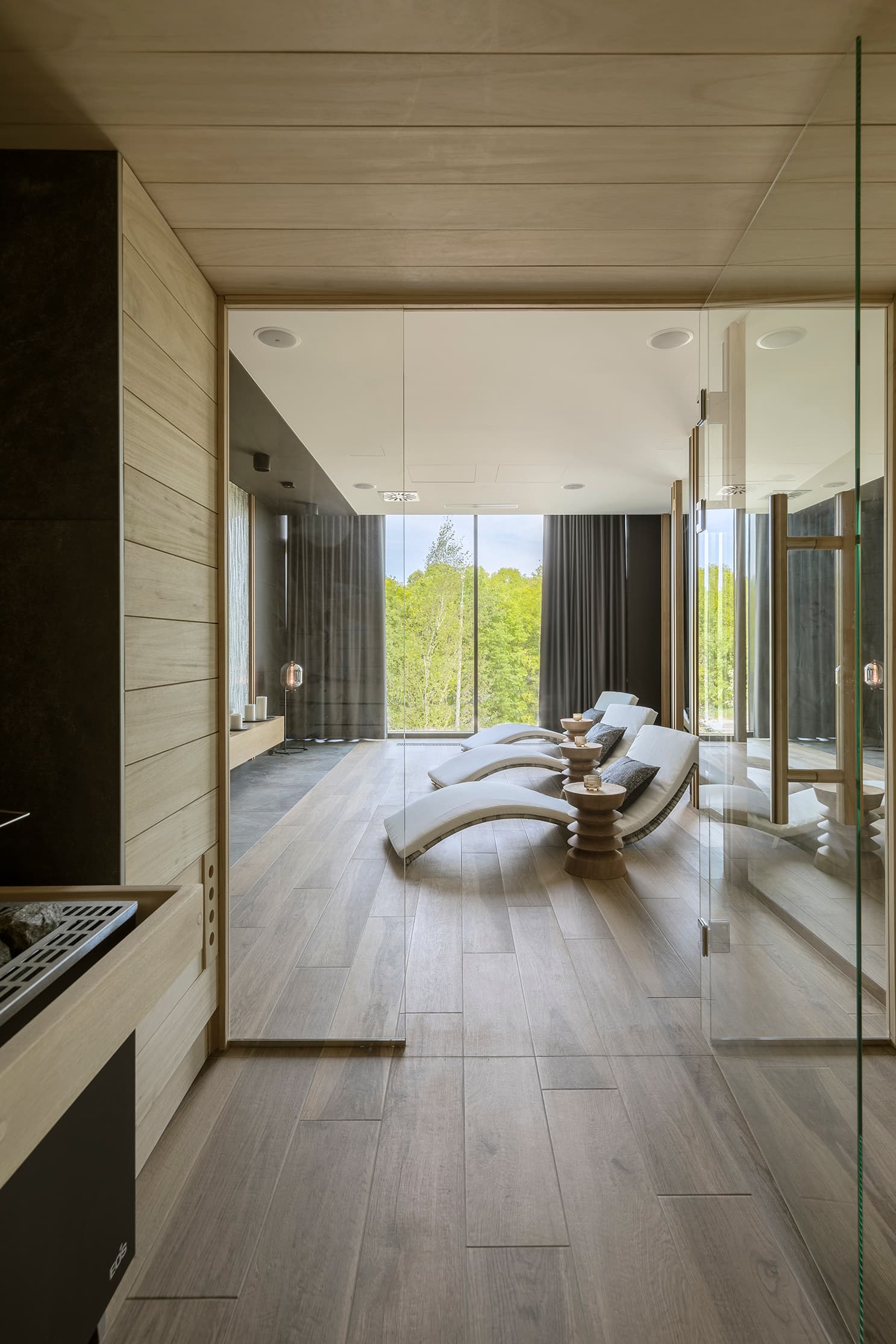 Nowoczesna, w pełni wyposażona strefa fitness pozwala zadbać o formę w dowolnym momencie. Przemyślany dobór sprzętu i eleganckie wykończenie wnętrz sprawiają, że codzienny trening staje się przyjemnością dostępną na wyciągnięcie ręki.