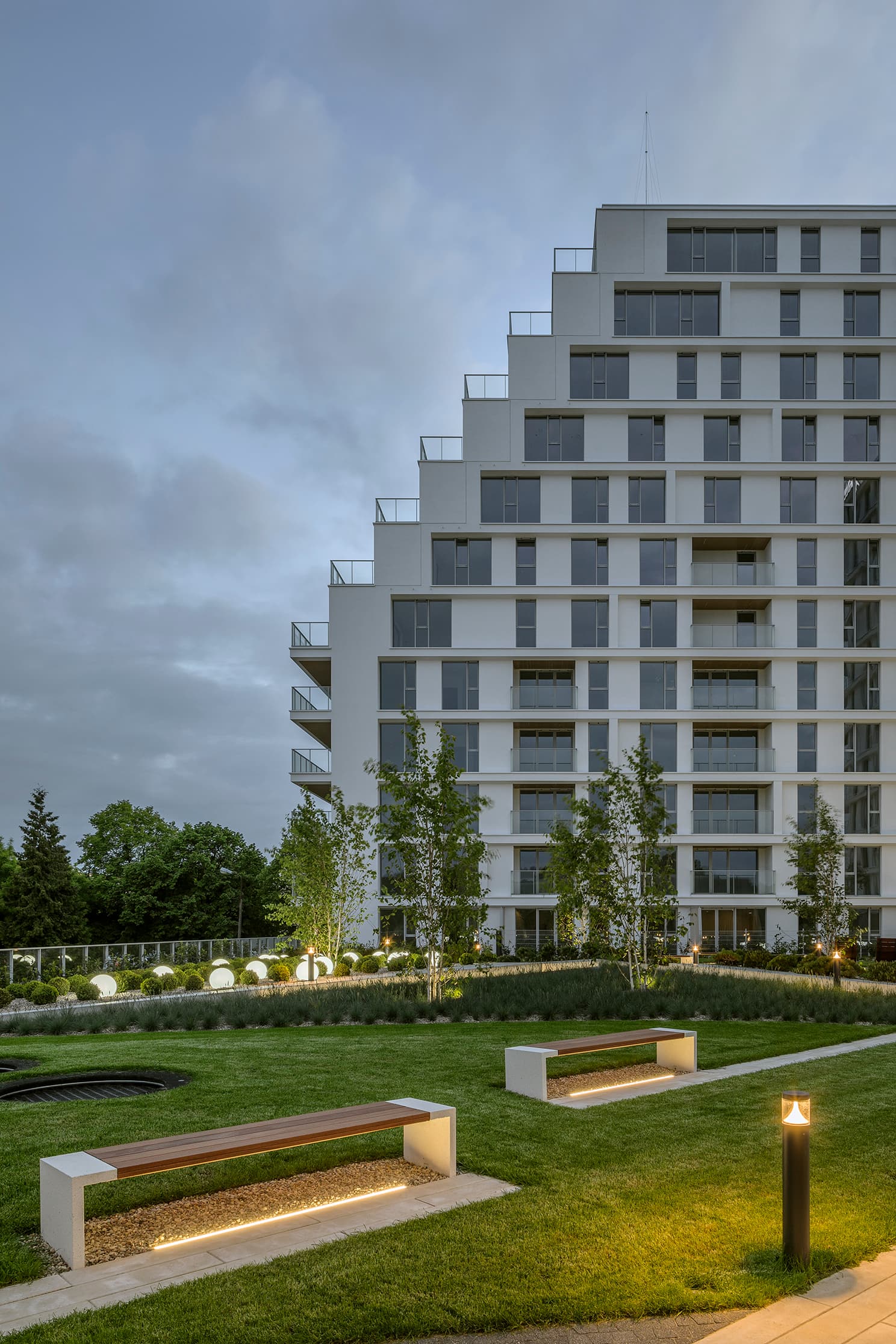 Na najwyższych piętrach znajdują się luksusowe penthouse’y o powierzchni do 163 m². Nagrody European Property Awards z wyróżnieniem FIVE STAR i oraz Budowa Roku uczyniły tę inwestycję jedną z najwyżej ocenianych realizacji mieszkaniowych w Europie.