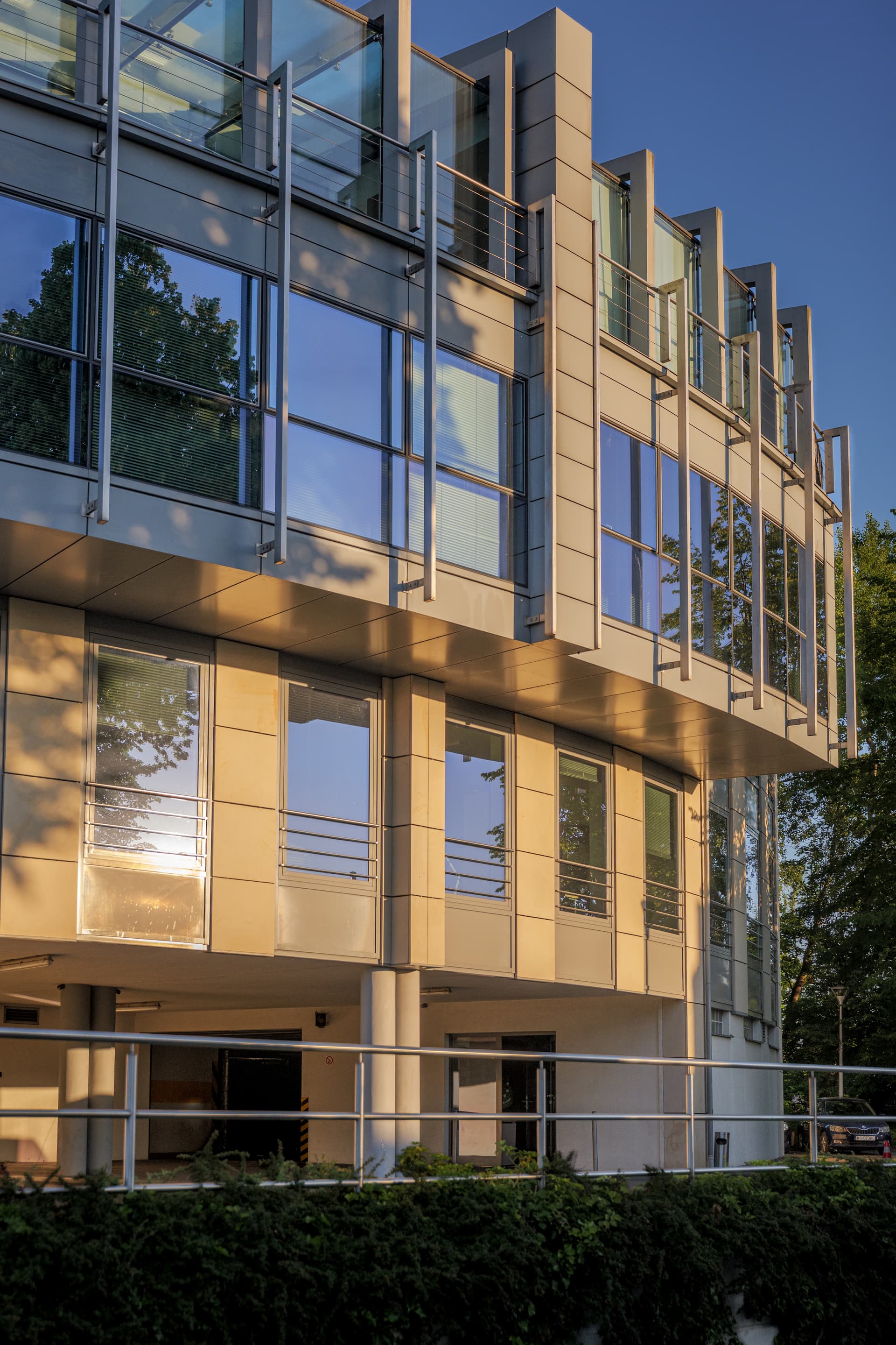 Budynki wzniesiono na skarpie, co utrudniało prace budowlane związane z posadowieniem i wykonaniem garażu podziemnego.